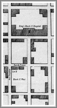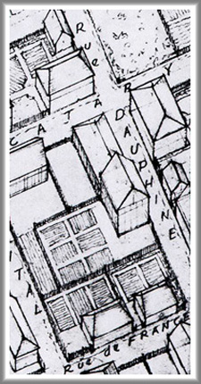 a plot 50 feet front on the Rue de France, and 66 feet deep along Rue Dauphine, limited to north by the Rue de France, which is