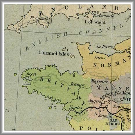 translated as "that is to say" or "called". ...The dit names sometimes followed the family through the Sometime during this period, Jean Pierre adopted the dit name Saint Michel. It is not known if this adopted dit name identified a region in France or Nouvelle France but could very well have been associated with one of the small “Saint Michel” villages near Québec City, such as Saint-Michel-de-Bellchasse approximately 75 miles east of Québec City on the Saint Lawrence River. On the other hand, this adopted dit name could have been associated with the region in France in which Saint-Malo is located, i.e., it could have been associated with the 9th century medieval castle, Mont Saint Michel, located less than 20 miles from Saint-Malo on the northern coast of France. Or, it could also be associated with small French coastal village of Saint Michel Chef Chef a mere 12 miles south of Saint Nazaire across the mouth of La Loire. New France 1755 by Robert de Vaugondy