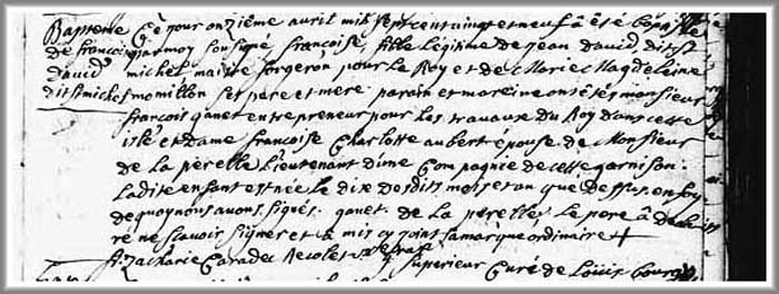 Magdelaine's sister, Genevieve Monmellian. Fre Claude Sanquer, Superior Cure and Vicar General presided at the baptism.