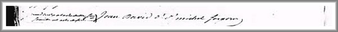 of Jean David clearly appears at the bottom of the record. However, the script of this signature is in a different hand than