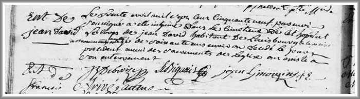 Witnesses attending Jean Jacques' baptism were Francois La Cher and Louis Le Page.