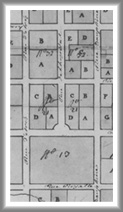 the relative location of the Jean David family home at Block 32 West, Lot B between 1723 and 1758.