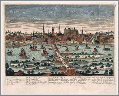 Saint Nazaire is located on the western coast of France on the right bank of the Loire River estuary. It is a mere 40 miles down river from Nantes, France and possessed a population of about 500 inhabitants at the time of Jean Pierre's birth at the beginning of the 18th century. Vue de Saint Nazaire by Jules Grinsard Nantes in Brittany engraving by Pierre Aveline (late 17c early 18c) A Précis of this 1st David dit Saint Michel generation ...... As an adventurous young Frenchman in search of his quest for a new life beginning, Jean Pierre embarked on a journey, about 1714, that would lead him to the new world of Nouvelle France (New France). From what can be told, whether fact or assumption, Jean Pierre discovered that new beginning and lived a long and prosperous life through troubling times for the inhabitants of French descent who colonized Nouvelle France, particularly those French inhabitants of Québec, Île Royale and Acadie. Marrying a girl from Québec City about 1717, with whom Jean Pierre fathered 17 children, he provided for his family as a master blacksmith for the King of France, Louis XV, at the Fortress of Louisbourg from the early 1720's to the late 1750's. In his senior years, he was a well respected elder of the Louisbourg community and often referred to, within a number of primary source records, as Sieur Jean David. Although prosperous and fulfilling, the life of Jean Pierre and his wife, Marie Magdelaine Monmellian dit Saint Germain, was by no means free from the strifes the French inhabitants of Nouvelle France endured during those trying times of the early to mid-18th century. Together, Jean and Marie survived through the early deaths of several of their children, as well as, the 1st British siege of the Fortress of Louisbourg in 1745 and the deportation of many French inhabitants and their families to France that followed or the escape by others to refuge elsewhere in Nouvelle France. With the passing of Marie Magdelaine in early 1755, Jean Pierre's life struggles continued to a tragic and soon final ending. Sometimes after the fall season of the year 1755, he learned of the deportation by the British of his oldest surviving son, Michel, and family, then living in Grand-Pre, Acadie, to whereabouts he knew not, along with thousands of French Acadians and other French inhabitants of Acadie during "Le Grand Dérangement". Finally, once again at the hands of the British Empire, the 2nd and last siege of the Fortress of Louisbourg in mid-1758 would see his divided family scattered to the winds of the world. Now divided, the exodus of the families of Jean Pierre's surviving children would lead them on separate paths, never to meet again, save possibily one. The journey of Michel and family, would lead them from Grand-Pré, Acadie to Snowhill, Maryland to New Orleans and Saint James, Louisiana. The deportation of the family of his oldest surviving daughter, Marie Josephe, would lead them from Louisbourg to Rochefort then Saint Malo, France. Jean Pierre's youngest known surviving son, Louis, would venture from Louisbourg to Bristol and Southhampton, England to France then on to Saint-Pierre et Miguelon and again to France and back. As for Jean Pierre's final journey, he and his daughters, Francoise Charlotte and Jeanne Olive along with Charlotte's family would exodus Louisbourg to La Rochelle, France. It would be Jean Pierre's last voyage, and his family would continue their journey without him to Saint Malo and Saint Servan, France, then 2 years later by way of Rochefort, France on to Kourou and Cayenne, French Guyana. Tragically, only one daughter would return to France alone and destitute. The other would remain in French Guyana, marrying into a status of stability which afforded her to live a long and prosperous life. Here within is the story of the Jean Pierre David family......here within is the tale of their lives...... |